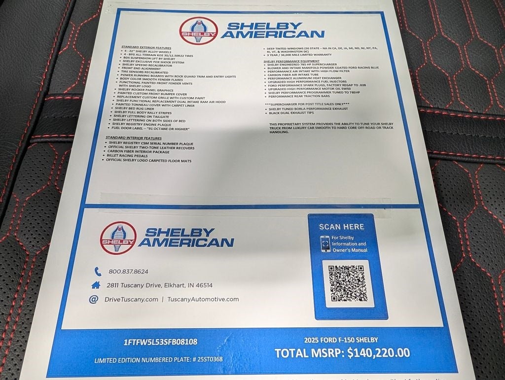 Silver Metallic 2025 Ford F-150 Shelby F150 Off Road 4WD 10-Speed Automatic 5.0L V8 ABS brakes, Alloy wheels, Compass, Electronic Stability Control, Front dual zone A/C, Heated door mirrors, Heated front seats, Illuminated entry, Low tire pressure warning, Remote keyless entry, Traction control. Price includes: $2000 - Retail Customer Cash. Exp. 03/31/2026 $500 - Retail Bonus Cash. Exp. 03/31/2026