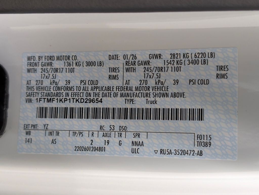 Oxford White 2026 Ford F-150 XL RWD 10-Speed Automatic 2.7L V6 EcoBoost