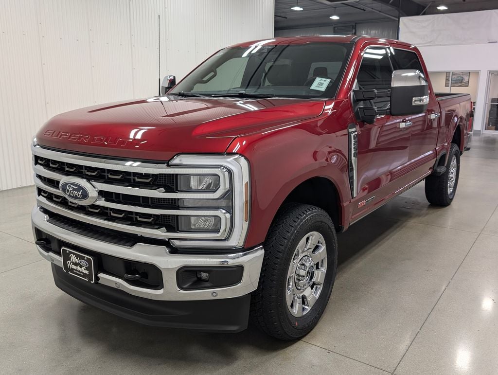 Ruby Red Metallic 2026 Ford F-250SD King Ranch 4WD 10-Speed Automatic 6.7L High Output Power Stroke V8 Diesel ABS brakes, Alloy wheels, Compass, Electronic Stability Control, Front dual zone A/C, Heated door mirrors, Heated front seats, Heated rear seats, Illuminated entry, Low tire pressure warning, Remote keyless entry, Traction control.