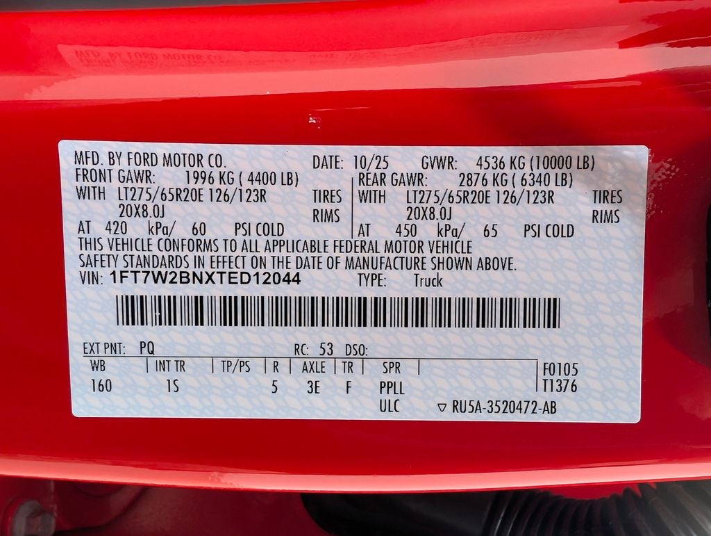 Race Red 2026 Ford F-250SD XL 4WD 10-Speed Automatic 7.3L V8 PFI SOHC 16V Federal 405hp