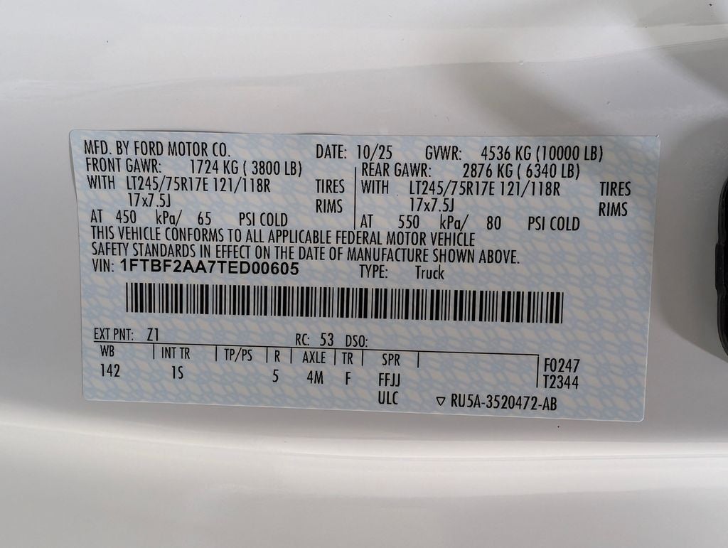 Oxford White 2026 Ford F-250SD XL RWD 10-Speed Automatic 6.8L V8 Price includes: $3500 - Retail Customer Cash. Exp. 03/31/2026