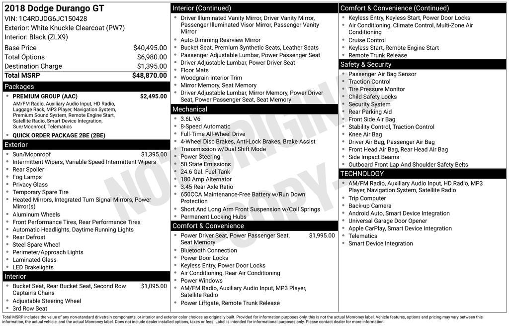 2018 Dodge Durango GT White Knuckle Clearcoat AWD 8-Speed Automatic 3.6L V6 24V VVT
