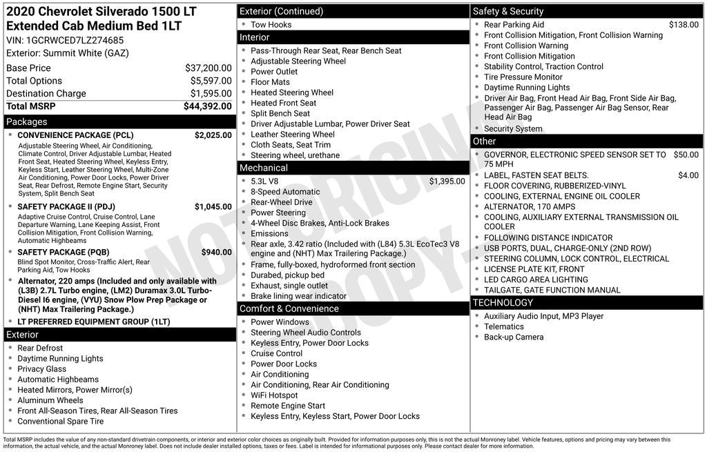 - Vehicle Name: Chevrolet Silverado 1500
