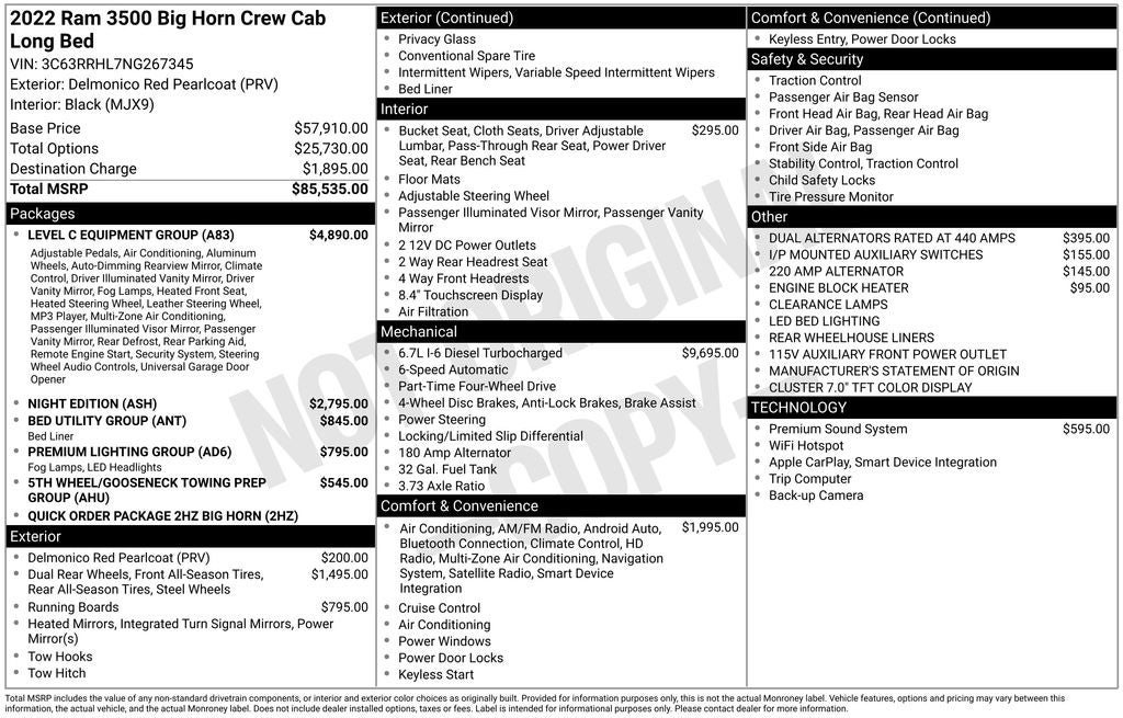 - Vehicle Name: Ram 3500