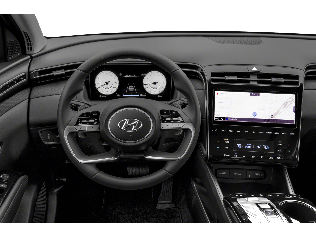 Welcome to Mel Hambelton Ford in Wichita, KS. All of our cars are hand picked and inspected for your peace of mind. This Tucson is equipped with the following options: Option Group 01, 3.648 Axle Ratio, 4-Wheel Disc Brakes, 8 Speakers, ABS brakes, Air Conditioning, Alloy wheels, AM/FM radio: SiriusXM, Apple CarPlay & Android Auto, Auto High-beam Headlights, Auto-dimming Rear-View mirror, Automatic temperature control, Brake assist, Bumpers: body-color, Cargo Net, Cargo Tray, Carpeted Floor Mats, Delay-off headlights, Driver door bin, Driver vanity mirror, Dual front impact airbags, Dual front side impact airbags, Electronic Stability Control, Emergency communication system: Blue Link Connected Car Service (3-year complimentary subscription), First Aid Kit, Four wheel independent suspension, Front anti-roll bar, Front Bucket Seats, Front Center Armrest, Front dual zone A/C, Front reading lights, Fully automatic headlights, Garage door transmitter: HomeLink, Heated & Ventilated Front Bucket Seats, Heated door mirrors, Heated front seats, Heated rear seats, Heated steering wheel, Illuminated entry, Leather Seat Trim, Low tire pressure warning, Memory seat, Navigation System, Occupant sensing airbag, Outside temperature display, Overhead airbag, Overhead console, Panic alarm, Passenger door bin, Passenger vanity mirror, Power door mirrors, Power driver seat, Power Liftgate, Power moonroof, Power passenger seat, Power steering, Power windows, Radio data system, Radio: Bose Premium w/AM/FM/HD/SiriusXM Audio System, Rain sensing wipers, Rear anti-roll bar, Rear Bumper Applique, Rear reading lights, Rear seat center armrest, Rear window defroster, Rear window wiper, Remote keyless entry, Roof rack: rails only, Security system, Speed control, Split folding rear seat, Spoiler, Steering wheel mounted audio controls, Tachometer, Telescoping steering wheel, Tilt steering wheel, Traction control, Trip computer, Turn signal indicator mirrors, Variably intermittent wipers, Ventilated front seats, Wheel Locks, and Wheels: 19 x 7.5J Machine-Face Finish Alloy.
